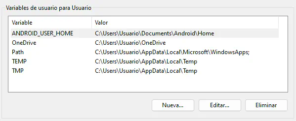 ANDROID_USER_HOME = C:\Users\Usuario\Documents\Android\Home