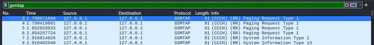 wireshark -k -f udp -Y gsmtap -i lo