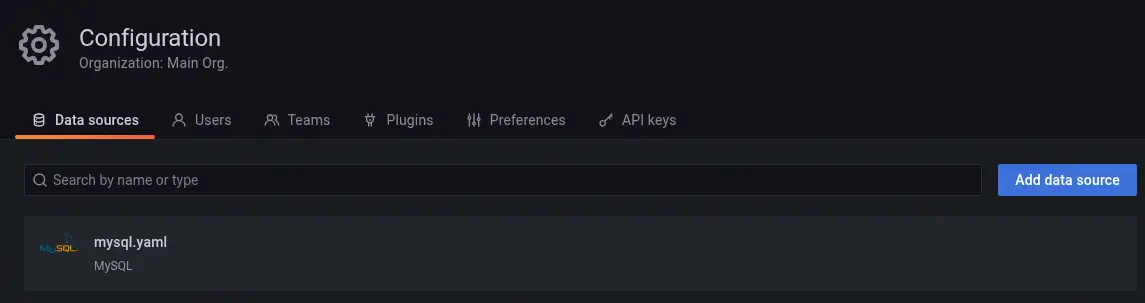 Read file > /etc/grafana/provisioning/datasources/mysql.yaml