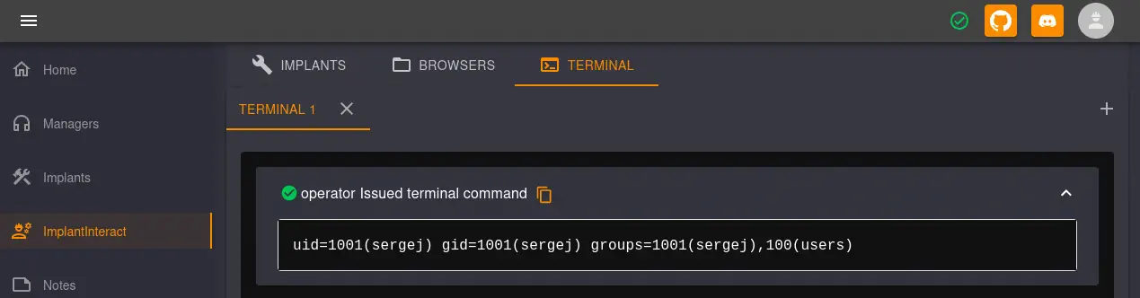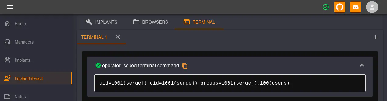 - Ejecución remota de comandos autenticada en Havoc Framework como usuario del sistema