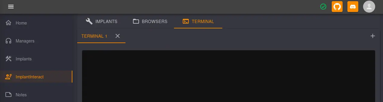 Ahora tenemos la opción de ejecutar comandos en una terminal en el menú ImplantInteract > Terminal > New Tab Icon que abre la pestaña Terminal 1.
