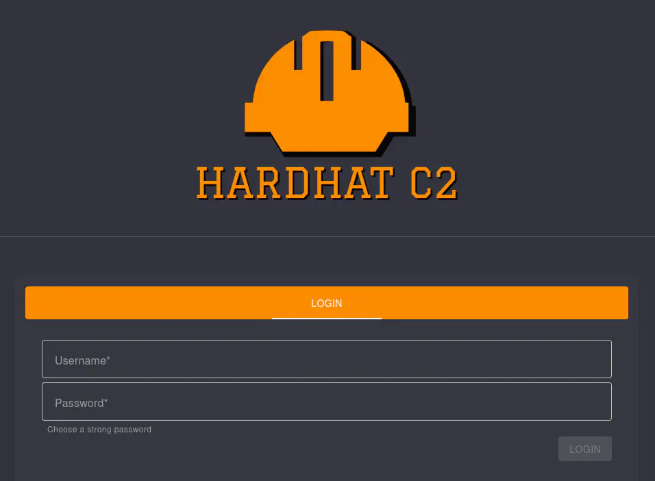 Ahora podemos acceder a la interfaz de usuario de HardHatC2 visitando el enlace https://127.0.0.1:7096/. Encontramos el formulario de inicio de sesión.️