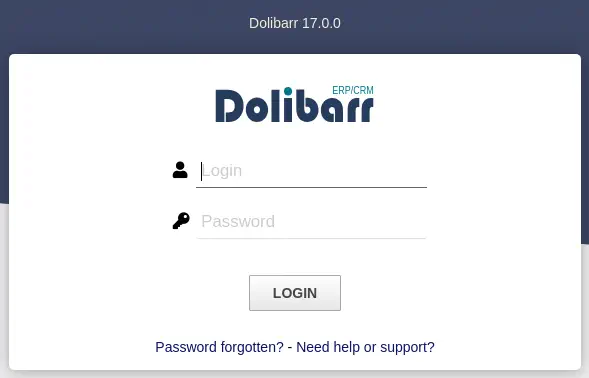 Encontramos la aplicación web CRM Dolibarr en su versión 17.0.0.