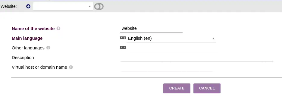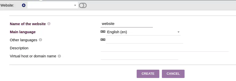 Como nombre del sitio web introducimos un nombre aleatorio y luego hacemos clic en CREATE.