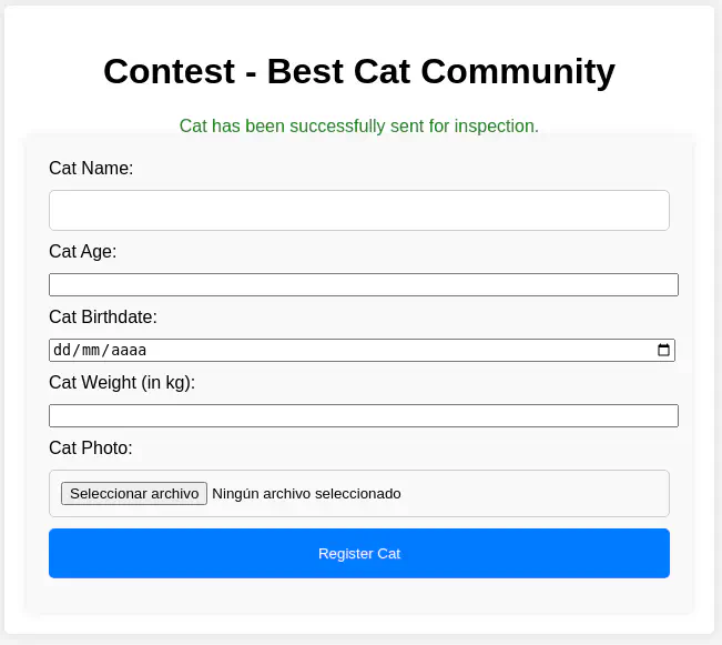 Ahora podemos hacer clic en la pestaña Contest y tendremos la opción de enviar datos del gato para el concurso. Después de enviar los datos, encontramos que se encuentran a la espera de inspección.️