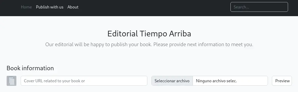 Obtenemos dos servicios: un Secure Shell (SSH) y un Hypertext Transfer Protocol (HTTP) funcionando en un sistema operativo Linux Debian. Agregamos el dominio del servidor HTTP, editorial.htb a nuestro archivo /etc/hosts.