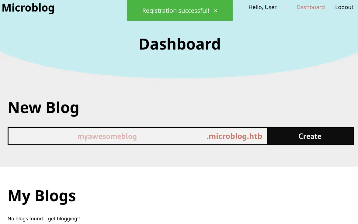We are able of entering the name of the new blog, in this case newblog.microblog.htb. We add the host to /etc/hosts file.