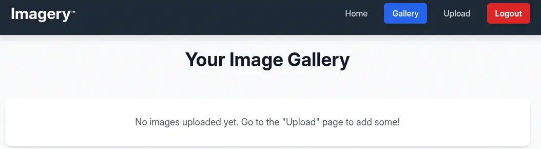 Obtenemos dos servicios: uno Secure Shell (SSH) y otro Protocolo de Transferencia de Hipertexto (HTTP). Como no tenemos credenciales creíbles para el servicio SSH, vamos a movernos al servicio HTTP. Parece que es una aplicación web escrita en Python. Agregamos la dominio imagery.htb a el archivo /etc/hosts.