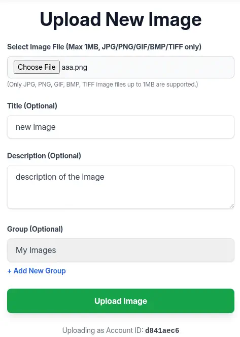 Al hacer clic en el botón Upload podemos subir una imagen seleccionando la opción del formulario.