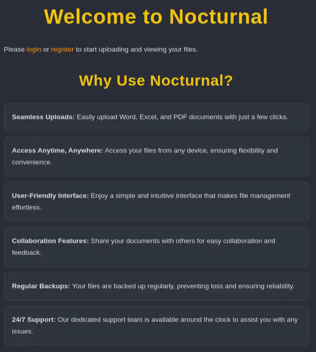 Nocturnal es una máquina fácil de Hack The Box que cuenta con las siguientes vulnerabilidades: