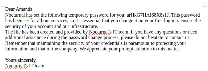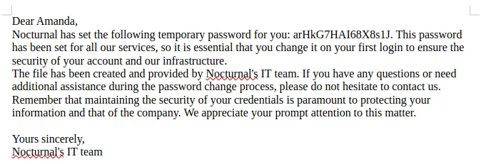 Cuando abrimos el archivo de documento, encontramos la contraseña para el usuario amanda, que es arHkG7HAI68X8s1J.️