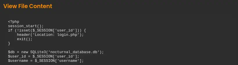 En el archivo dashboard.php, encontramos que la aplicación utiliza una base de datos SQLite guardada en el archivo nocturnal_database.db.️