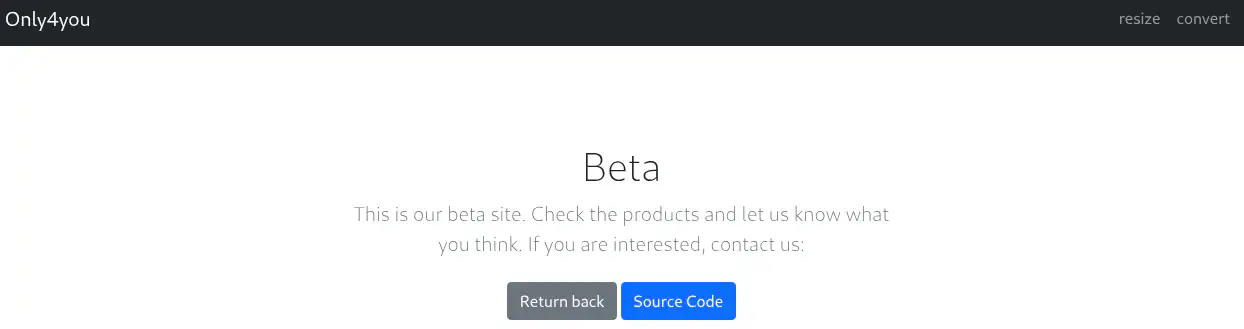 Encontramos una página web ofreciendo dos servicios: resize y convert. Tenemos la opción de descargar el código fuente de la página en http://beta.only4you.htb/source.