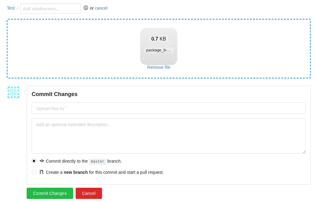 Ahora podemos subir el archivo dist/package_b-0.1.tar.gz al repositorio Git y luego obtener la URL para descargarlo (raw).