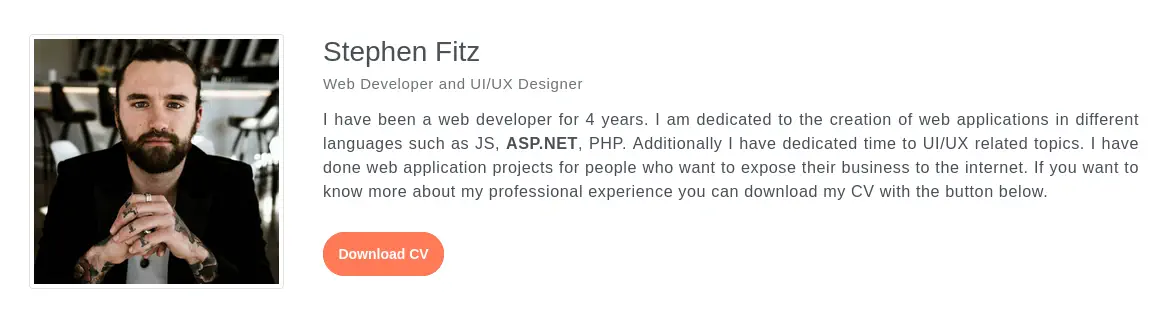 En la página web tenemos la capacidad de descargar un CV en formato PDF y la capacidad de contactar al propietario enviando un mensaje a través de un formulario de contacto.