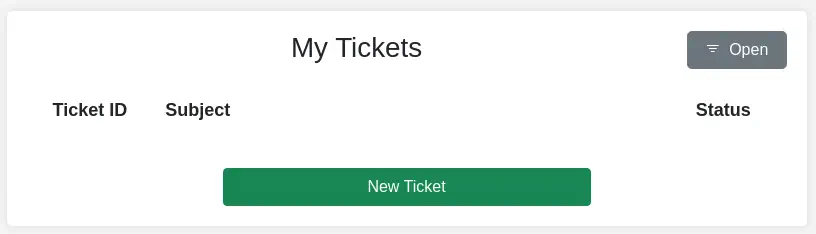 Nos registramos con una cuenta, por ejemplo, con el nombre de usuario newuser y la contraseña 12345678. Cuando nos logueamos, nos redirige a una página donde podemos leer y abrir tickets.