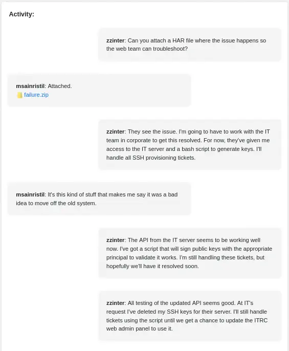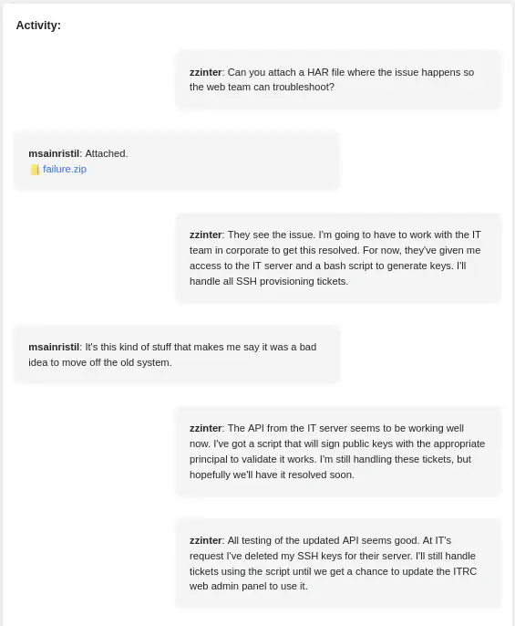 $ curl --cookie 'PHPSESSID=841c88bc0168fb629fe70ba05fb3f9c9' 'http://itrc.ssg.htb/?page=ticket&id[]=1'