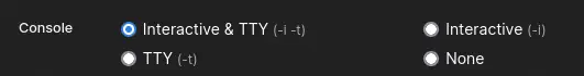 Después de eso, en Advanced container settings al final de la página seleccionamos la opción Console con Interactive & TTY (-i -t) para tener acceso interactivo a la terminal del contenedor desde Portainer.