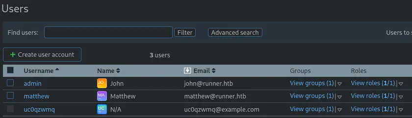 INSERT INTO USERS VALUES(2,'matthew','$2a$07$q.m8WQP8niXODv55lJVovOmxGtg6K/YPHbD48/JQsdGLulmeVo.Em','Matthew','matthew@runner.htb',1713652620426,'BCRYPT')