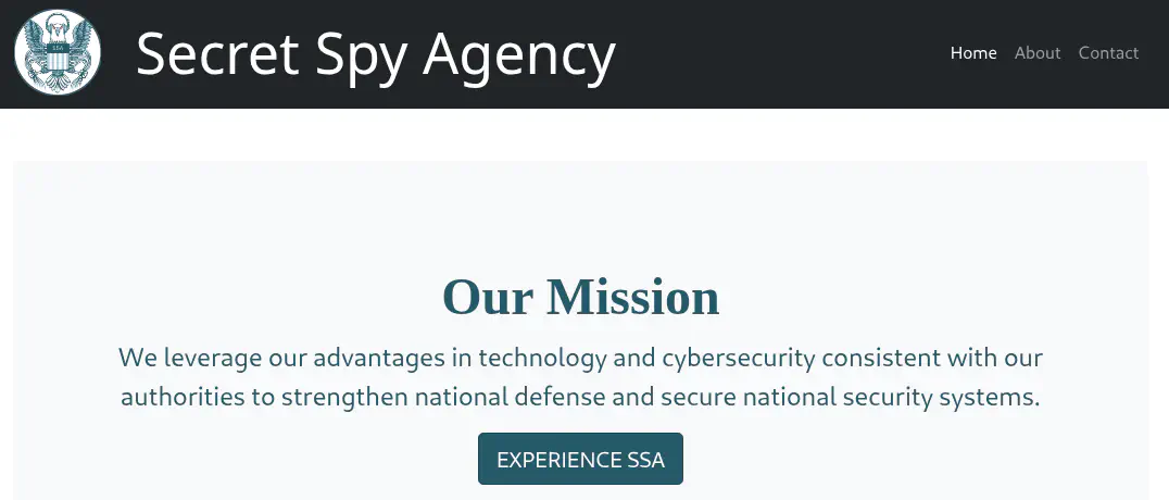 Encontramos un sitio web sobre una “Secret Spy Agency” que está desarrollado con la biblioteca Python Flask, como podemos ver al final de la página: Powered by Flask™.