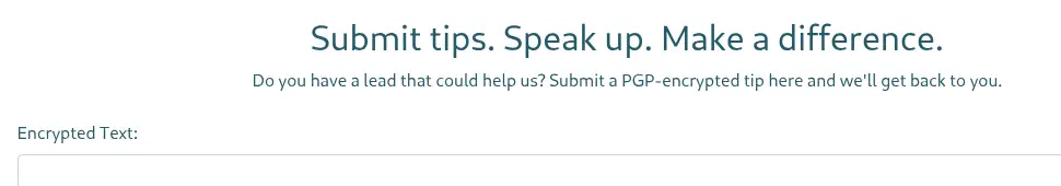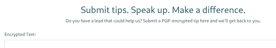 Estamos en condiciones de enviar un mensaje a la agencia utilizando la sección Contact. Solo podemos enviar textos cifrados con PGP.