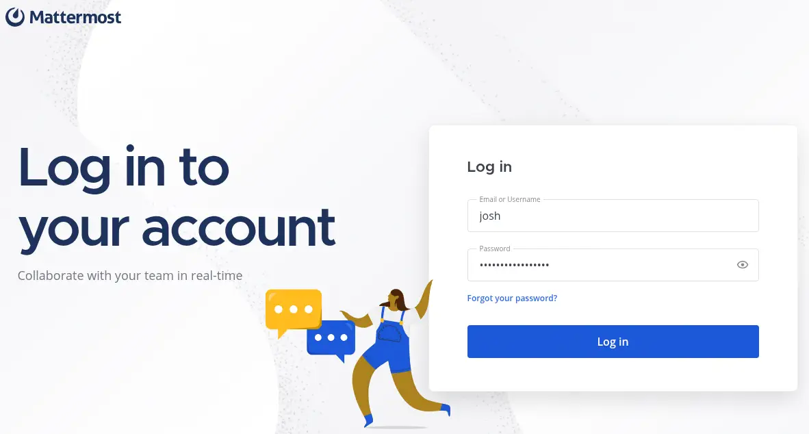El subdominio existe y nos redirige a la página de inicio de sesión de la aplicación Mattermost.