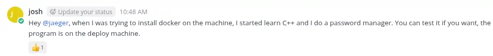 Las credenciales de josh funcionan y podemos iniciar sesión en la página principal de la aplicación. En el canal Development encontramos que josh codificó un gestor de contraseñas en C++ y se desplegó en la máquina.