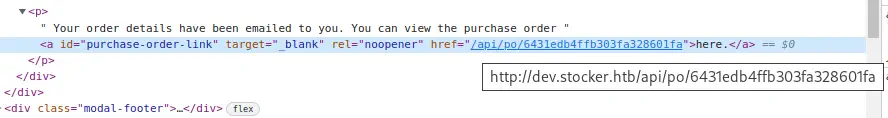 $ echo "10.10.11.196 dev.stocker.htb" | sudo tee -a /etc/hosts