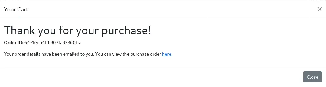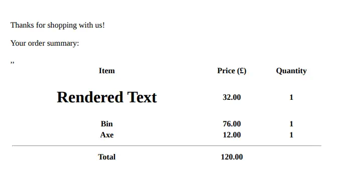 Recibimos el ID de pedido para la solicitud así que entramos en el navegador web para comprobar si el PDF del ticket ha renderizado el código HTML.
