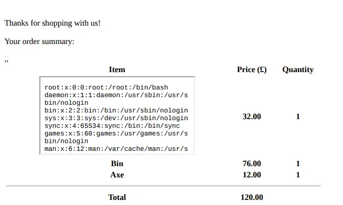 Como vemos el código HTML se renderiza, por lo que la aplicación es vulnerable. Ahora vamos a obtener un archivo, por ejemplo el archivo /etc/passwd, con un iframe.