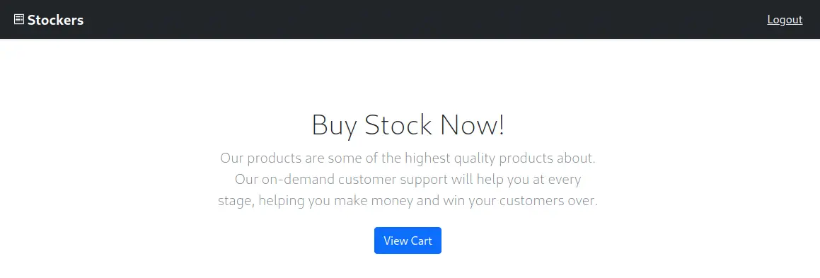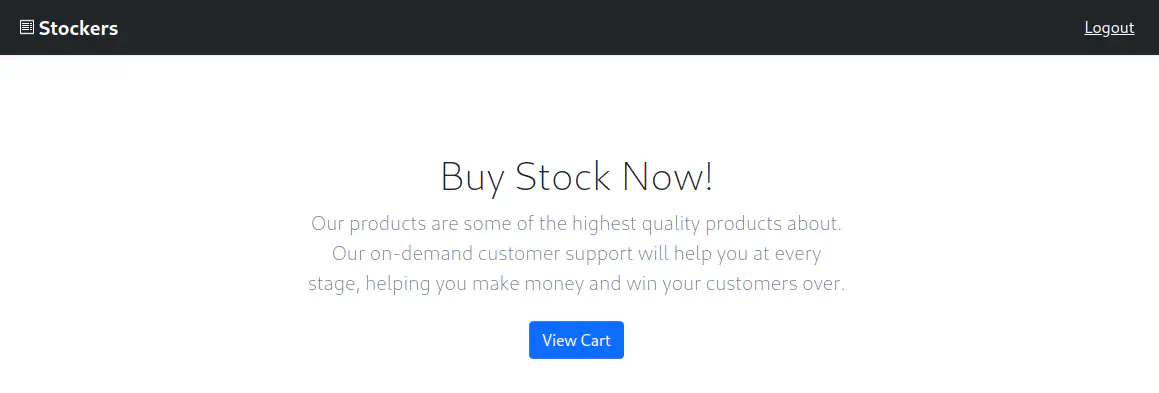 Obtenemos dos servicios: Secure Shell (SSH) y Hypertext Transfer Protocol (HTTP) ejecutándose en un Linux Ubuntu. Como no tenemos credenciales factibles para el servicio SSH vamos a pasar al servicio HTTP. Observamos que el servicio alberga un sitio web http://stocker.htb, por lo que lo añadimos a nuestro archivo local /etc/hosts.