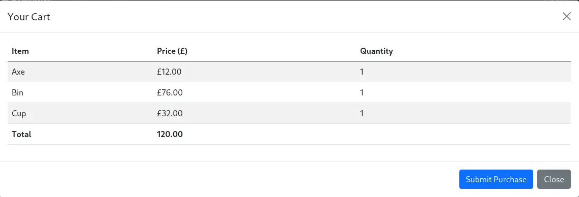 Al interceptar la solicitud de pedido con Burp Suite vemos una solicitud JSON con los detalles del pedido. En la solicitud vemos que el título de los artículos coincide con los nombres de los artículos en el archivo PDF.