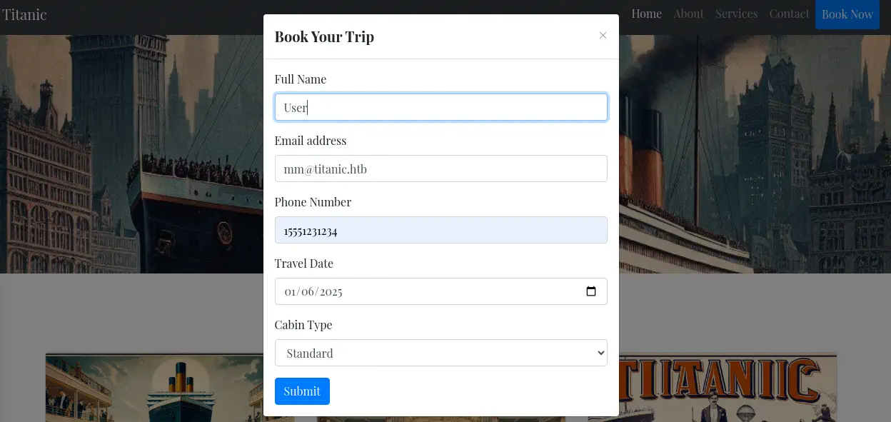 $ echo "10.129.46.214 titanic.htb" | sudo tee -a /etc/hosts