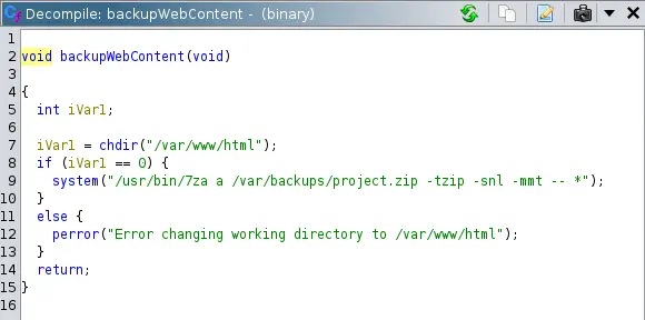 Si hacemos ingeniería inversa al binario vemos que el directorio /var/www/html está siendo comprimido.