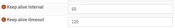 Activamos la configuración avanzada de la instancia mediante el botón advanced mode y configuramos la opción Keep alive interval en 60 segundos y Keep alive timeout en 120 segundos para evitar desconexiones de las sesiones SSH por VPN.