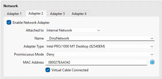 192.168.0.0/24, y será una red de tipo interna con el nombreDmzNetwork, en la que OPNsense actuará como servidor DHCP.