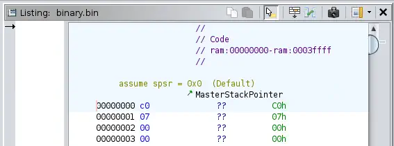 En este caso, el firmware ha sido extraído de un dispositivo basado en el SoC Nordic nRF51, basado en el procesador Cortex-M0 con instrucciones ARM, a través de SWD tal como se muestra en este artículo. No solo se extrajo el firmware, sino toda la memoria interna desde la dirección hexadecimal 0x0 a la 0x40000, 262144 bytes, o 256 KB. Para el análisis utilizaremos el desensamblador y decompilador Ghidra.