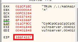 The program crashed again. Enter the address of the EIP at this point (e.g. FAFBFCFD):