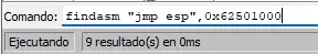 Obtenemos la dirección de memoria de una instrucción JMP ESP que anotamos, 625011AF.